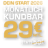 Ab dem 4. Monat dann weiterhin stark reduziert für 34,00€ statt 59,00€ mtl. kündbar*. Du bleibst maximal flexibel - jederzeit!